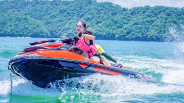 千岛湖希尔顿水上乐园目前游水上项目:动感游艇兜风(10km)、水上飞人(20分钟)、滑水冲浪(10分钟)、摩托艇漂移(6km)、水上沙发(6km)、水上飞鱼(6km)、水上陀螺(6km)、水上香蕉船(6km)、皮划艇(不限时)、透明网红皮划艇、浆板(不限时)、休闲电瓶船(30分钟)、水上自行车(不限时)、成人闯关竞技区、儿童冲关娱乐区、水上步行球(10分钟)等大小20多个项目。