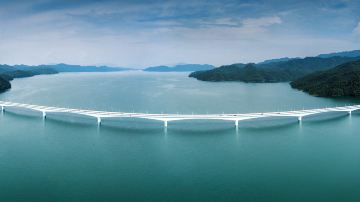 千岛湖上江埠大桥于2011年6月29日建成,全长1278米,它的建成通车,标志着千岛湖环湖公路真正成环,并实现了全天候通车,也圆了淳安45万人半个多世纪的环湖交通梦。这座大桥也使梅花半岛、港口列岛、塔山半岛、百湖列岛等沉睡半个多世纪的旅游资源将重现生机。 在大桥上,可以以一个全新的角度欣赏千岛湖的美景。