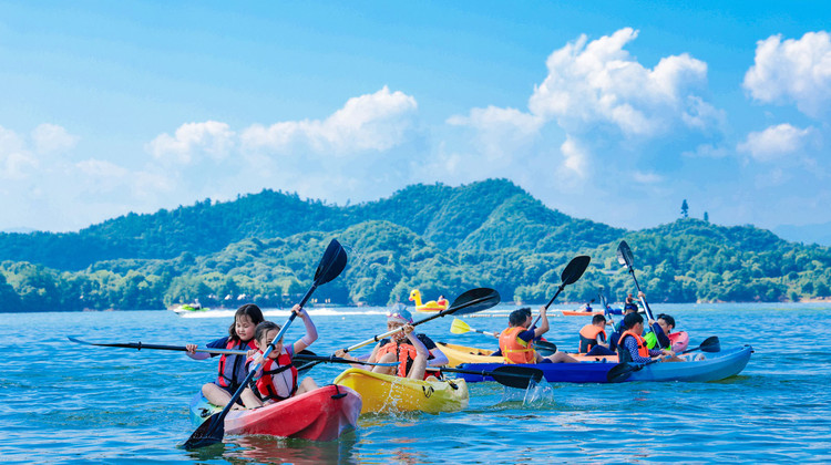 百舸争流,皮划艇探索,于水面穿梭,感受水上运动魅力